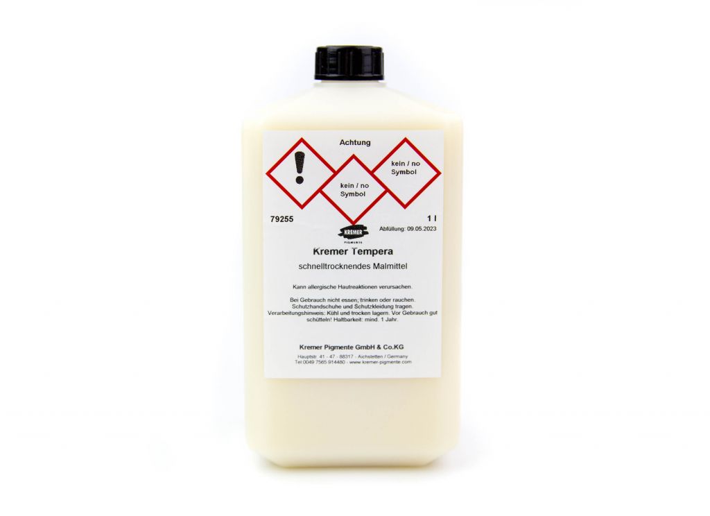 Kremer Tempera je mléčně bílá emulze na bázi čistých přírodních pojiv. Tempera je stabilizovaná levandulovým olejem a neobsahuje žádné syntetické přísady ani konzervanty.